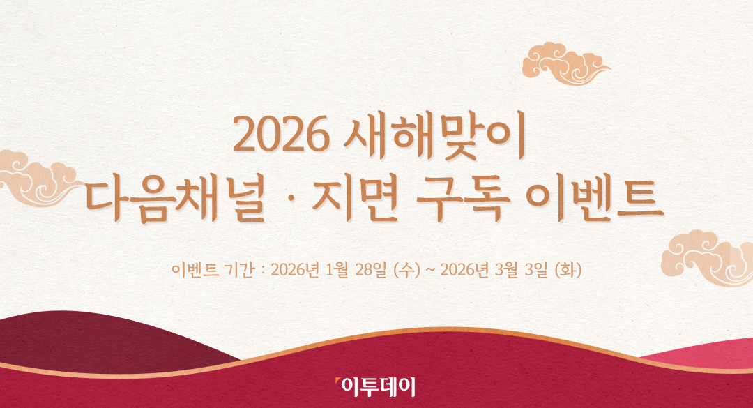 붉은 말이 여는 역동의 한 해, 프리미엄 경제신문 이투데이가 여러분의 흔들림 없는 투자 나침반이 되겠습니다. 또한 이투데이가 다음채널 입점을 기념해 작은 선물을 준비했습니다. 지금 ‘이투데이 다음채널’ 구독하고 커피 한 잔의 여유도 함께 즐겨보세요. 아울러 기간 한정 신문 구독료 할인도 함께 진행하오니, 많은 관심과 참여 부탁드립니다.